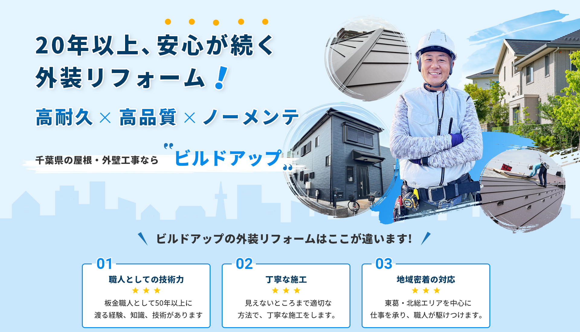 ビルドアップでは正しい施工手順と確かな技術で、安心・安全な工事をお約束します。