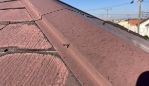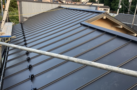 本体施工後に貫板取り付けています。屋根本体を張った後に貫板を取り付ける工法は、雨漏りのリスクが高まるため注意が必要です。