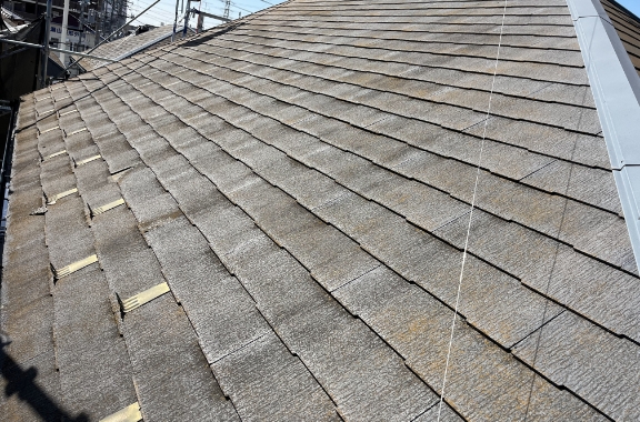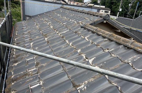 既存の屋根はひび割れが多く雨漏りの不安があったため、葺き替え工事を行いました。