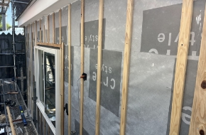 既存の外壁の上に木材を取り付け、、その上に高耐久かつ軽量のサイディングを施工します。